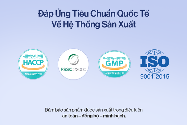 Không dừng lại ở GMP, các đối tác sản xuất của Gilaa còn đạt nhiều chứng nhận quốc tế khắt khe như HACCP, ISO và FSSC22000. Những tiêu chuẩn này là minh chứng rõ ràng cho sự kiểm soát toàn diện từ an toàn thực phẩm đến quản lý chất lượng. Điều đó giúp sản phẩm của Gilaa không chỉ đáp ứng nhu cầu trong nước, mà còn đủ điều kiện để xuất khẩu và cạnh tranh tại những thị trường quốc tế khó tính.