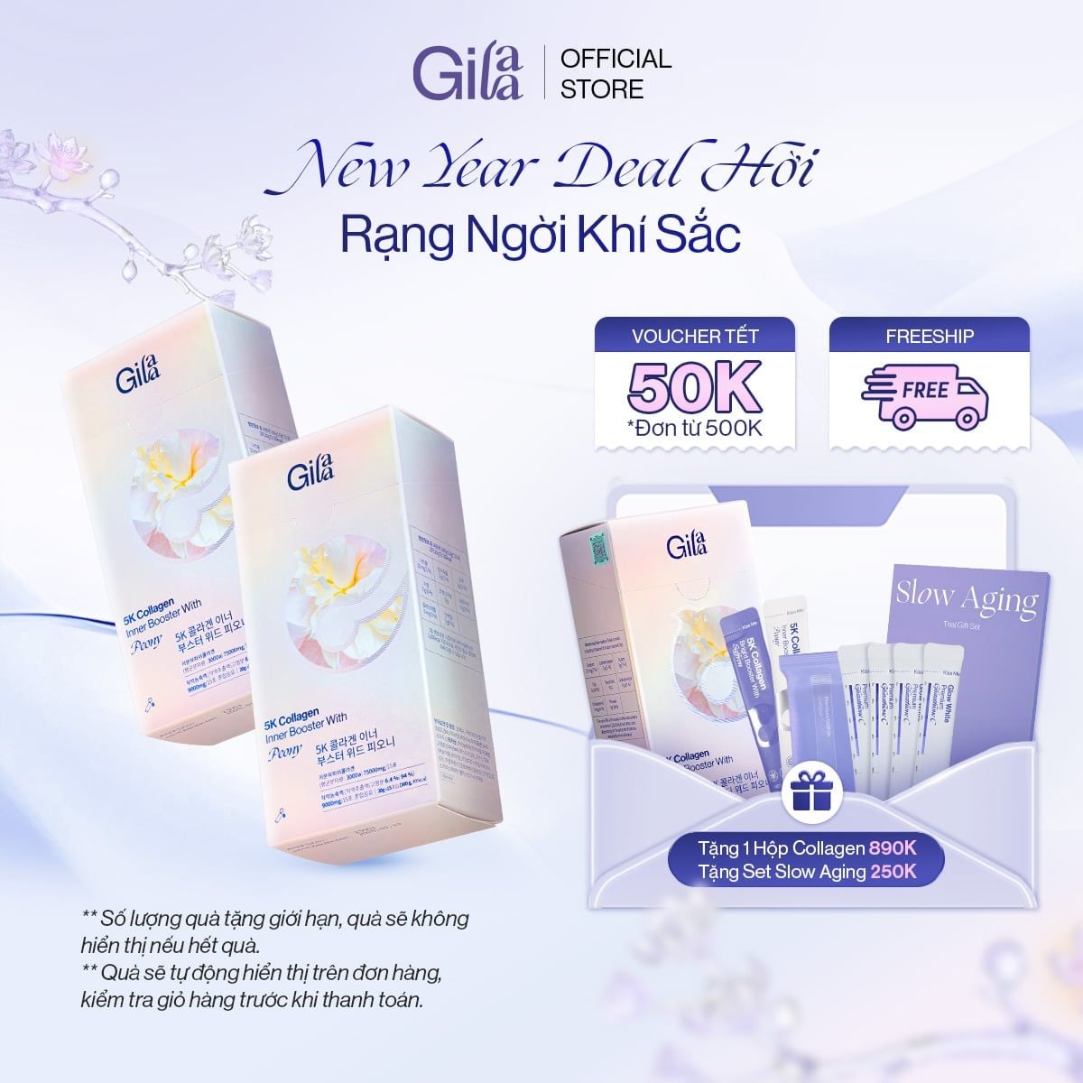 Thực Phẩm Bổ Sung Gilaa 5K Collagen Bight Booster With Saffron (20g x 15 gói) Và Gilaa 5K Collagen Inner Booster With Peony (20g x 15 gói) - Dạng Nước