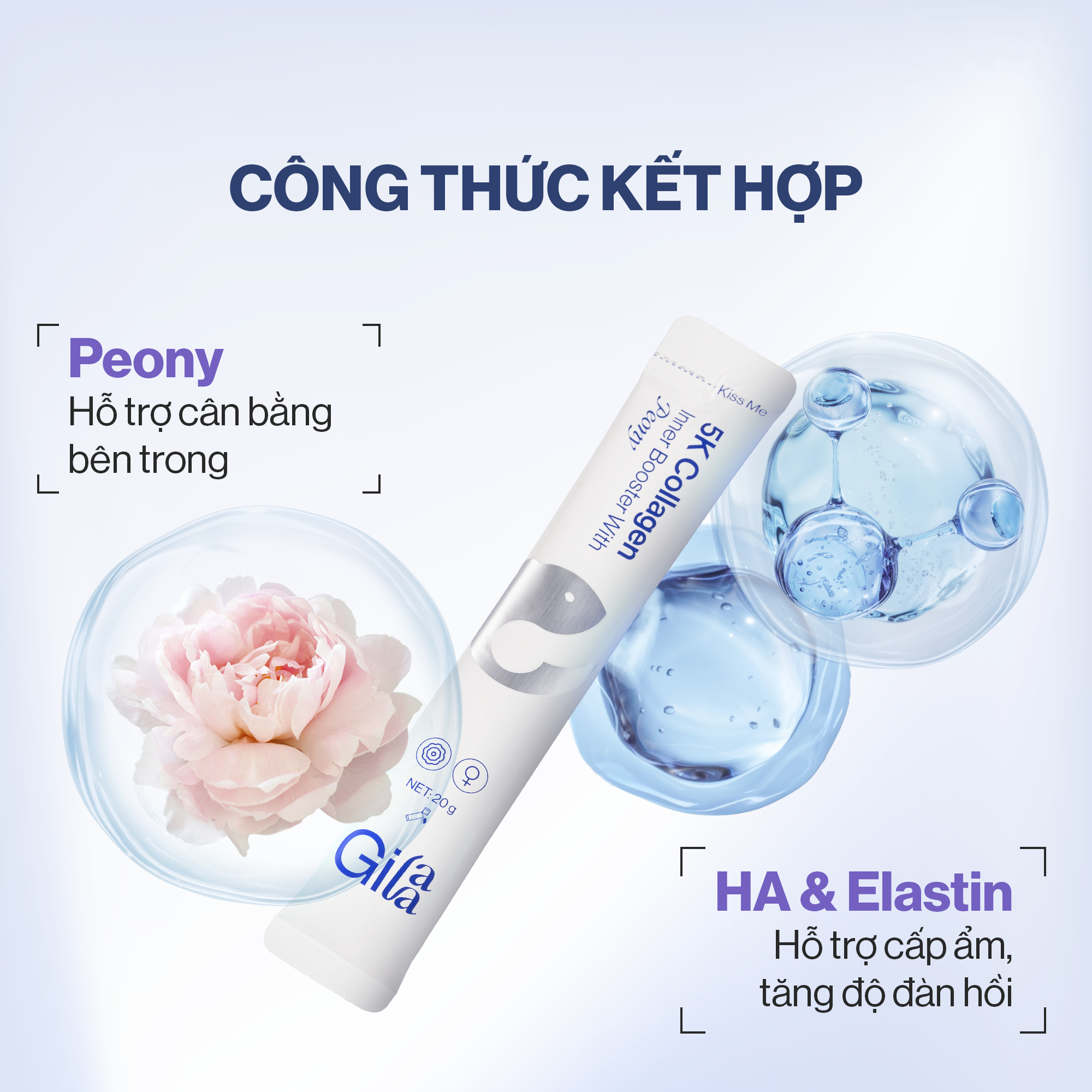 + Elastin, HA giúp da giữ ẩm, tăng độ đàn hồi