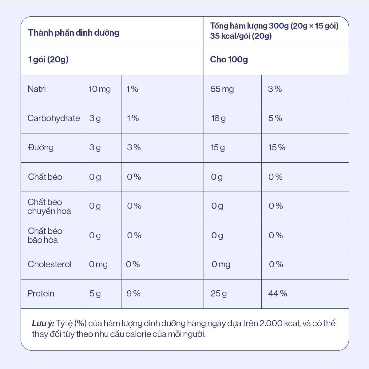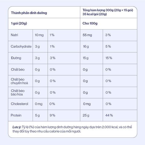- Sử dụng 1 gói mỗi ngày, có thể dùng trực tiếp hoặc pha với nước và các thức uống khác tùy theo sở thích